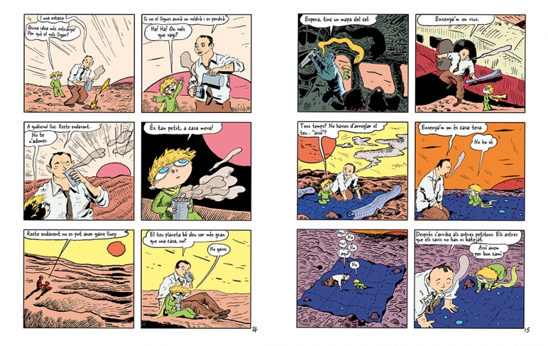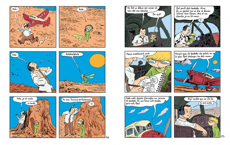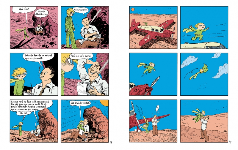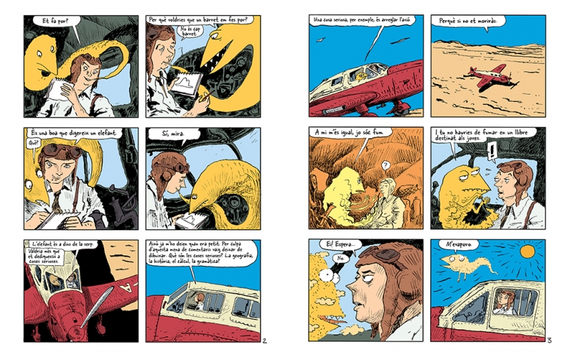 O sigui que he viscut sol, sense ningú amb qui de veritat poder parlar, fins que vaig tenir una avaria al desert del Sahara, fa sis anys. S'havia trencat alguna cosa del motor. I com que no anava amb cap mecánic ni amb cap passatger, em vaig preparar per mirar de fer, tot sol, una reparació difícil. Per mi era una qüestió de vida o mort. Amb prou feines tenia aigua per beure per a vuit dies. La primera nit, doncs, em vaig adormir a la sorra a mil milles de cap terra habitada. Estava molt més aïllat que un náufrag en un rai al mig de l'oceá. O sigui que imagineu-vos la sorpresa que vaig tenir, a trenc d'alba, quan una veueta molt especial em va despertar. Deia: -Si us plau... dibuixa'm un be! -¿Eh! -Dibuixa'm un be...