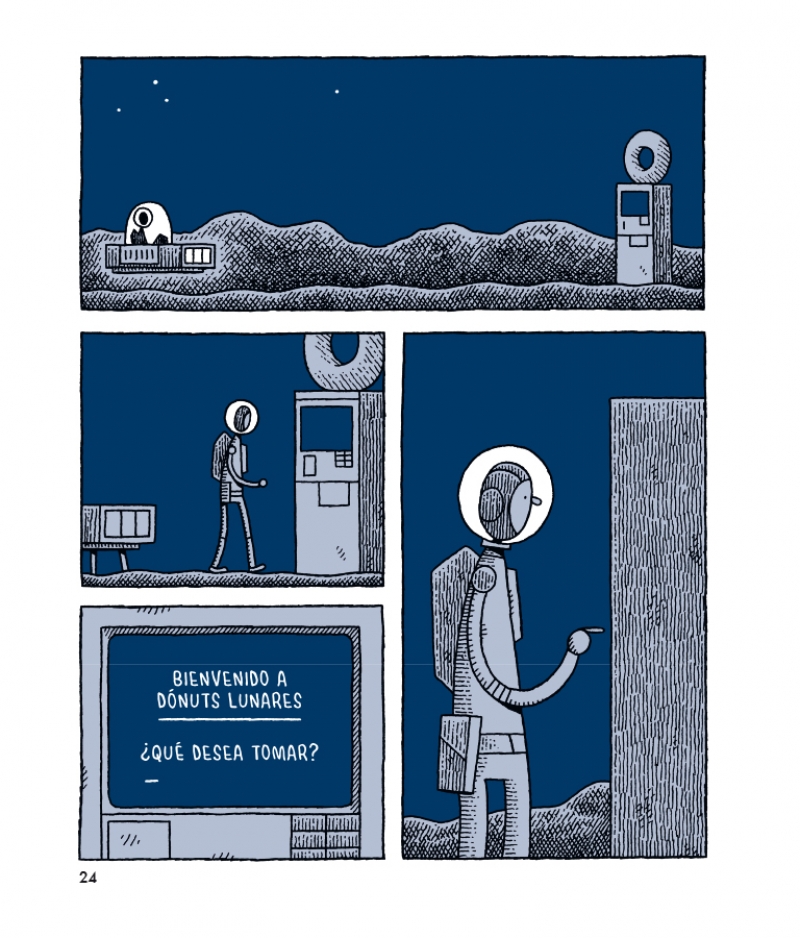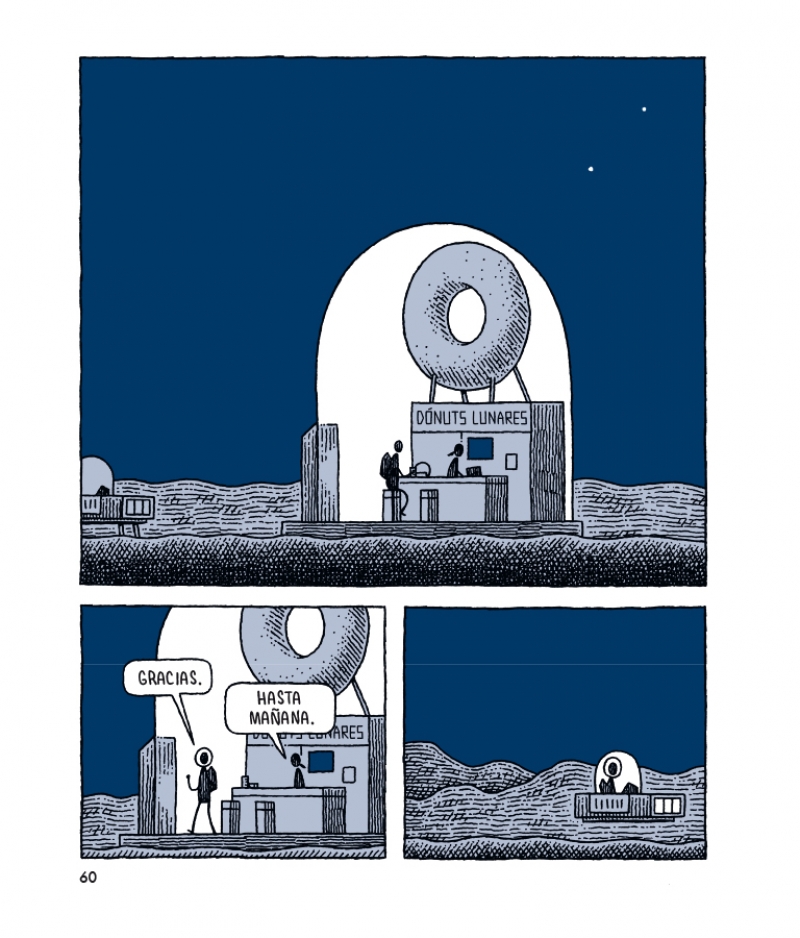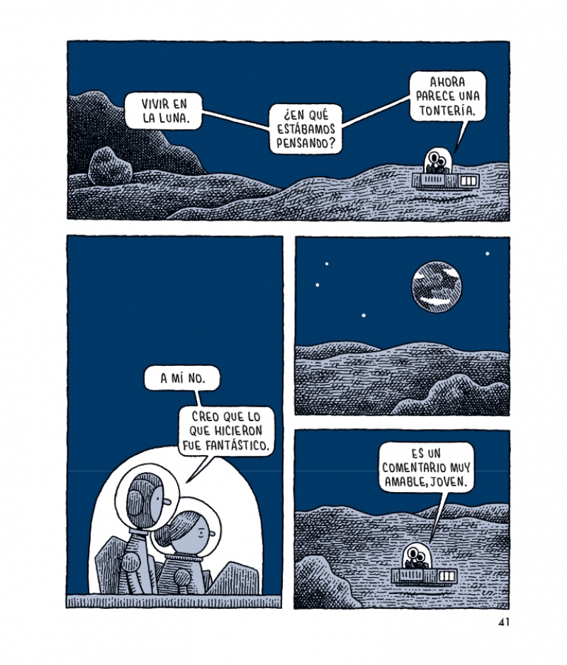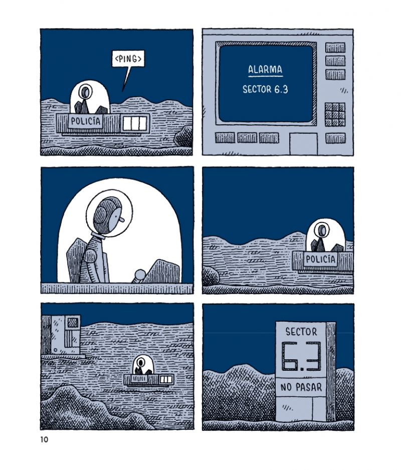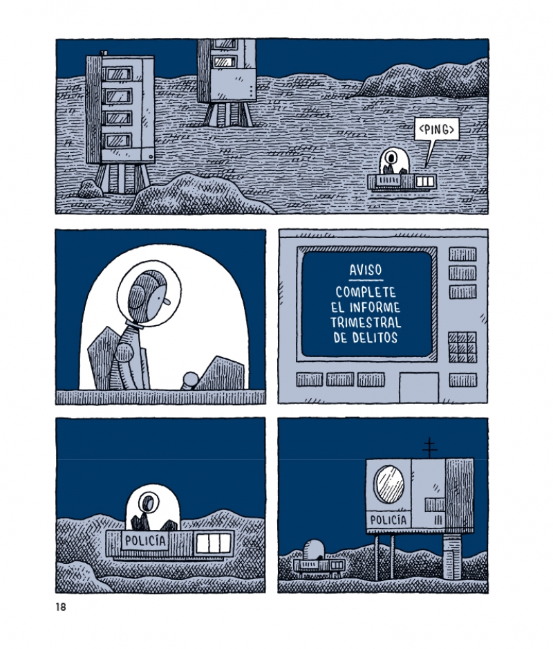 Con el reconocible estilo de su autor, sobrio pero de gran expresividad, Un policía en la luna combina inteligencia, humor y melancolía, plasmando algunas verdades esenciales sobre los anhelos y desengaños inherentes al ser humano. Con sólo tres libros, Tom Gauld se ha consagrado como uno de los artistas de cómic más interesantes y admirados del panorama internacional.