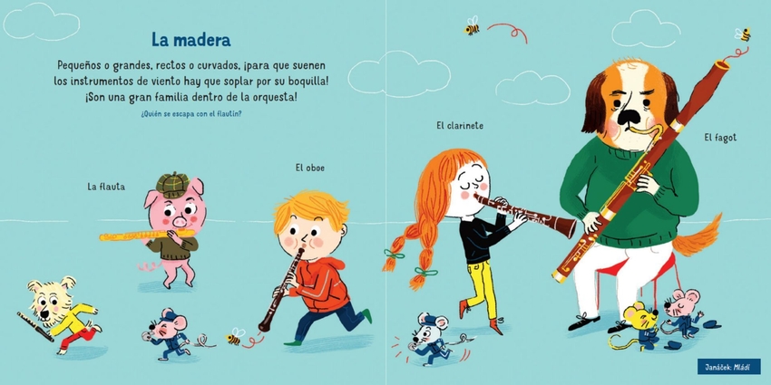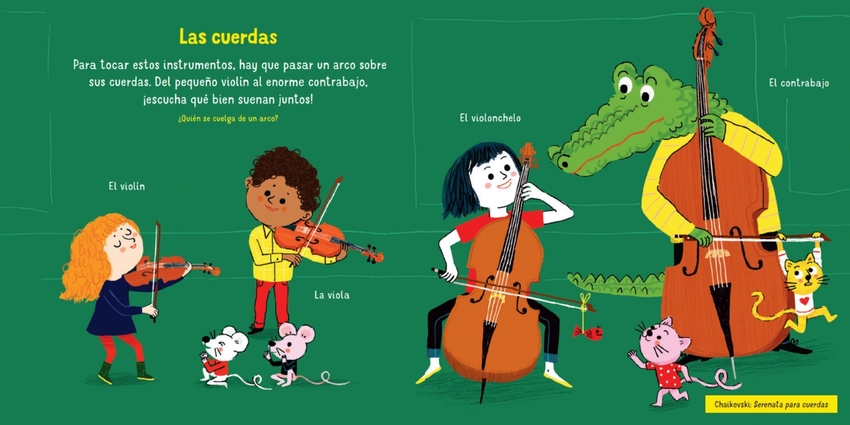 ¡Las pequeñas manos solo tendrán que pulsar los botones para dar vida a los sonidos!¡Pulsa el botón y descubre las familias de los instrumentos! En este libro de cartón conocerás las familias de instrumentos que podemos encontrar en una orquesta: las cuerdas, la madera, el metal y la percusión. Cada doble página contiene una pequeña explicación de la familia, cuatro instrumentos y un botón sonoro. Al final, toda la orquesta une fuerzas para entonar una magnífica sinfonía. Un libro perfecto para introducir la música clásica a los más pequeños. Los botones están adaptados a manos pequeñas, que aprenderán muy pronto a encontrar y hacer sonar de manera autónoma. Está especialmente dirigido a bebés, con los cantos romos para que no se hagan daño e imágenes muy grandes y llenas de colores para que cada página llame su atención. Además, ¡contiene un chip final con un sonido aleatorio para hacer un juego sonoro de BUSCA Y ENCUENTRA! Deberás asociar cada instrumento con el sonido que escuches cuando pulses el botón. Funciona con pilas AAA que son más duraderas y aportan una mejor calidad de sonido. Esto significa ¡más tiempo para disfrutar de este libro! Una colección de una calidad inigualable. Ilustraciones de Charlotte Roederer. Recomendado a partir de 1 año. Títulos de la colección Mi primer libro de sonidos: Música, maestro. Mi primer libro de sonidos Músicas del mundo para bailar. Mi primer libro de sonidos. Los pájaros. Mi primer libro de sonidos Los instrumentos. Mi primer libro de sonidos ¡Cumpleaños feliz! Mi primer libro de sonidos La flauta mágica. Mi primer libro de sonidos Los animales. Mi primer libro de sonidos Las aves exóticas. Mi primer libro de sonidos La granja. Mi primer libro de sonidos En el campo. Mi primer libro de sonidos La jungla. Mi primer libro de sonidos Los juguetes. Mi primer libro de sonidos El cascanueces. Mi primer libro de sonidos Las músicas del circo. Mi primer libro de sonidos Canciones del mundo. Mi primer libro de sonidos Descubro la orquesta. Mi primer libro de sonidos Aprendo inglés. Mi primer libro de sonidos Aprendo a contar en inglés. Mi primer libro de sonidos Melodías clásicas de la naturaleza. Mi primer libro de sonidos La escuela infantil. Mi primer libro de sonidos El orinal. Mi primer libro de sonidos Pip, piip. Mi primer libro de sonidos ¡Splash! Mi primer libro de sonidos ¡Muuu! Mi primer libro de sonidos La música de la orquesta. Mi primer libro de sonidos ¡Rock 'n' roll baby! Mi primer libro de sonidos Mi primer GRAN libro de sonidos Mi gran busca y encuentra de sonidos
