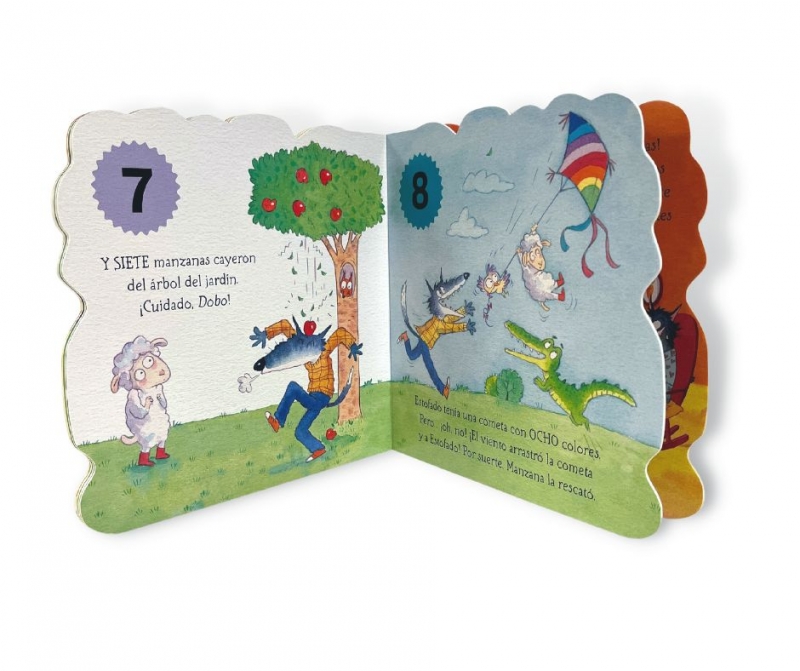 Diviértete aprendiendo a contar del 1 al 10 con los amigos de la serie de La ovejita que vino a cenar. ¡Conoce los números con Estofado y Dobo! 1 viejo lobo que conoce a una ovejita. Los 2 se hacen amigos. 3 lobos hambrientos que vienen a cenar ¡hasta que se convierten en 10 amigos escuchando una historia! Disfruta de una nueva aventura de La Ovejita y sus amigos alrededor de los números. ¡Aprender nunca ha sido tan entretenido!Un libro de cartón perfecto para los mayores fans de la serie de La ovejita que vino a cenar. Gracias a él, ¡podrán quedarse dormidos contando ovejitas! Los niños pequeños disfrutarán con las más divertidas aventuras en este precioso libro de cartón. *Fácil de manipular por sus pequeñas manitas.*Potencian su imaginación con las ilustraciones de su ovejita favorita. *Libros novedosos, pensados para convertirse en clásicos.