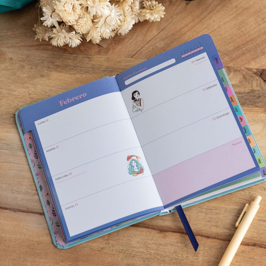 Menos exigencias, más disfrute: esta es la propuesta de María Hesse para el 2026.La nueva agenda diaria de María Hesse 2026 es una invitación a escribir sin prisa, sin límites y sin que nada se te quede en el tintero. A diferencia de la versión semana vista, pensada para una organización más visual y rápida, esta agenda es ideal para quienes necesitan tiempo y espacio para desarrollar ideas, registrar pensamientos, anotar cada detalle o incluso llevar un diario personal. Con su inconfundible estilo, la ilustradora María Hesse convierte cada página en un refugio de belleza, sensibilidad y expresión. Cada día de entre semana dispone de una página completa (sábado y domingo se agrupan en una página), lo que la hace especialmente útil como accesorio de trabajo o estudio. Incluye ilustraciones exclusivas, textos que invitan a desconectar, y páginas extra para tus listas favoritas, anotaciones libres o proyectos creativos, pegatinas, póstits y un bolsillo doble. No es solo una agenda: es una declaración de intenciones para las que quieren ir más allá de lo práctico y convertir la rutina en algo más profundo, más artístico, más suyo. Perfecta para regalar (o regalarte) si buscas acompañarte de arte y empoderamiento cada día del año. Características: Formato: 16,8 x 22,8 cm. Formato interior 16,4 x 22,2 cm. 388 páginas. 1 página con tacos de pósits. 4 páginas de adhesivos. Bolsillo doble. Goma de cierre. Pestañas plastificadas. Esquinas redondeadas. Tapa dura. Estamping rosa metalizado en la portada. Wire-o.